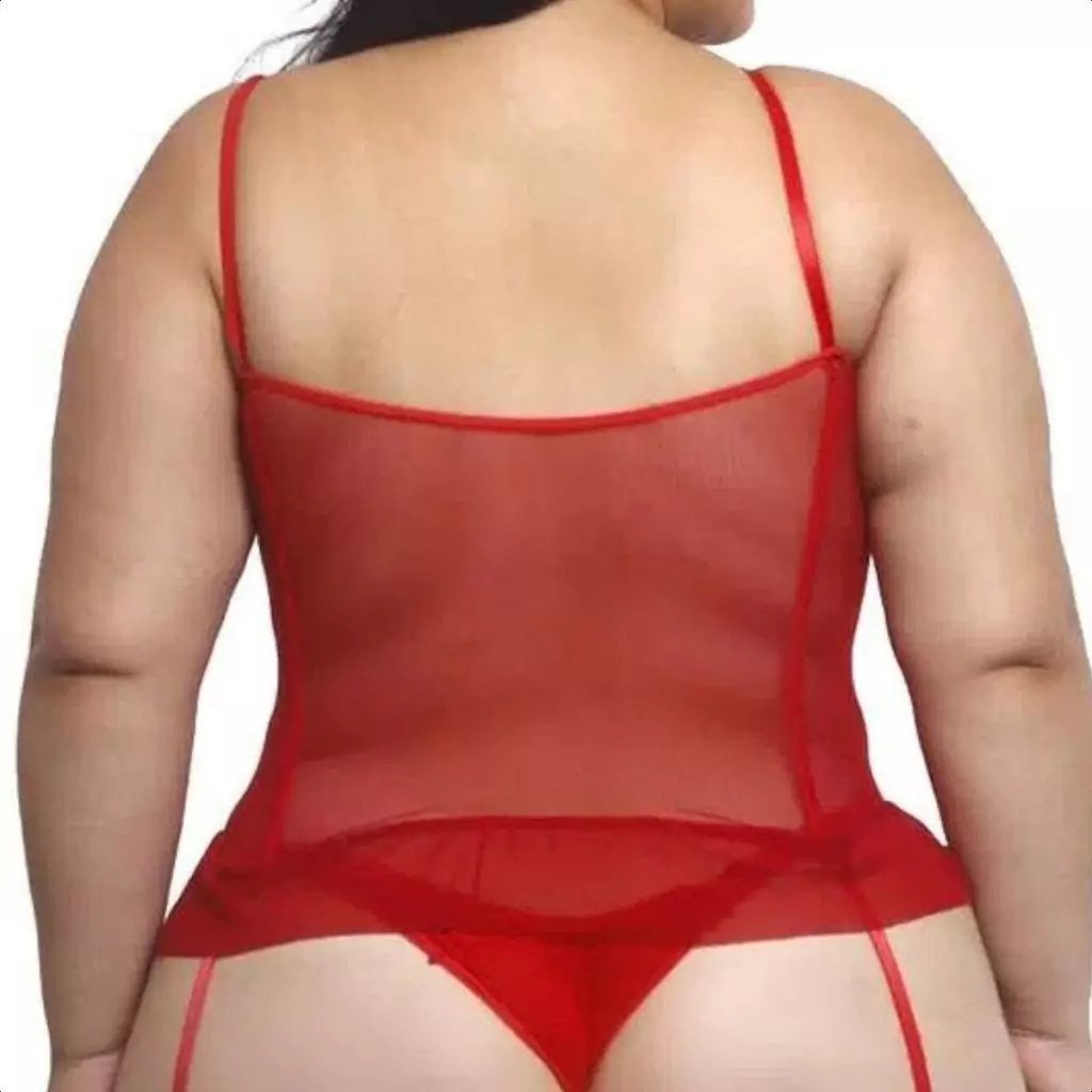 O Espartilho Vermelho Bordado Em Tule e Renda Com Bojo Zíper Plus Cetim é todo confeccionado em tule flexível e transparente. Com barbatanas de PVC dando mais firmeza a peça, possui zíper na parte frontal e bordado fino encobrindo da abertura até a parte da barbatana em cada lado. A peça finaliza com babadinho e ligas. O sutiã possui bojo e alça com regulagem. e também acompanha calcinha de mesmo material.