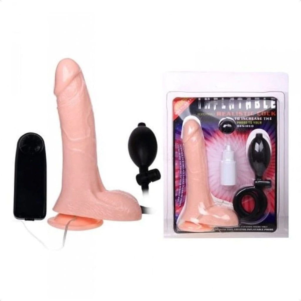 O Pênis Inflável Com Vibrador, Ventosa e Saco 19cm x 4cm Pele Inflatable foi feito em silicone para te dar sentimento realístico. Acompanhado com glande, veias, escroto e ventosa para te proporcionar as melhores sensações. Com bomba manual para a prótese aumentar de acordo com seu comando e suas preferências. Não possui vibrador.